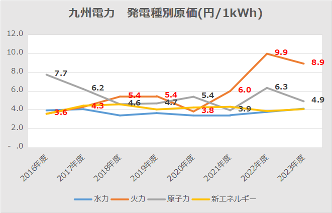 九州電力の発電種別コスト、及び原子力発電の原価内訳を発電量、損益計算書、営業費用明細から考察