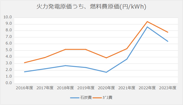 燃料種別では、特に石炭原価の上昇幅が大きい。
